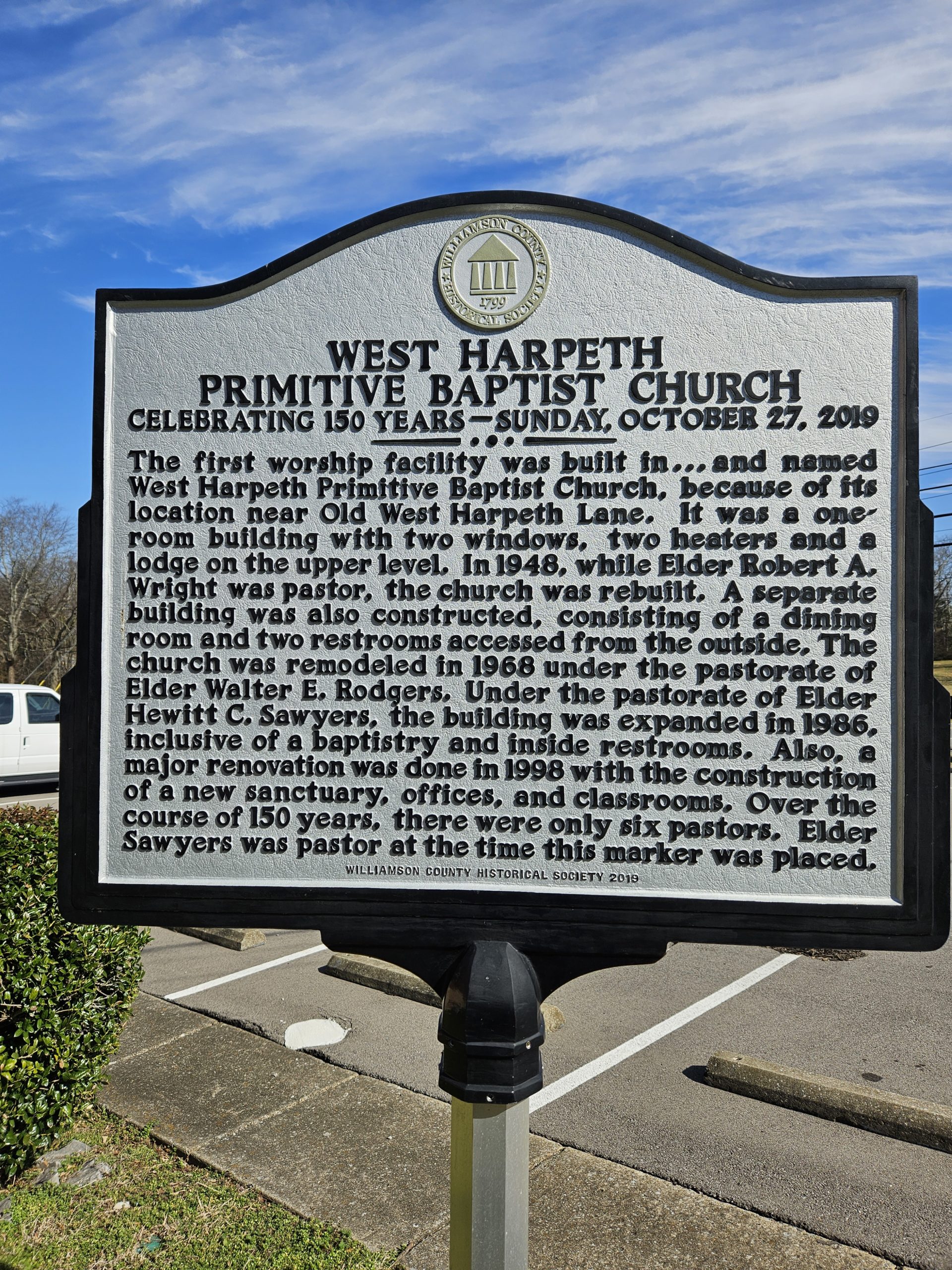 In addition to Elder Peter Starnes, West Harpeth has had five other pastors: Elder Zachariah (Zack) Bostic—organized the first usher board; Elder R. A. Wright—built a new church in 1948, organized the Sunday School, introduced music in the church, and organized other ministries; Elder Walter Rodgers—remodeled the church in 1968, renovated the church in 1972, built a fellowship hall with restrooms, started junior choir; Elder James Coure—purchased a bus, organized the junior usher board; organized the young adult choir, etc.;